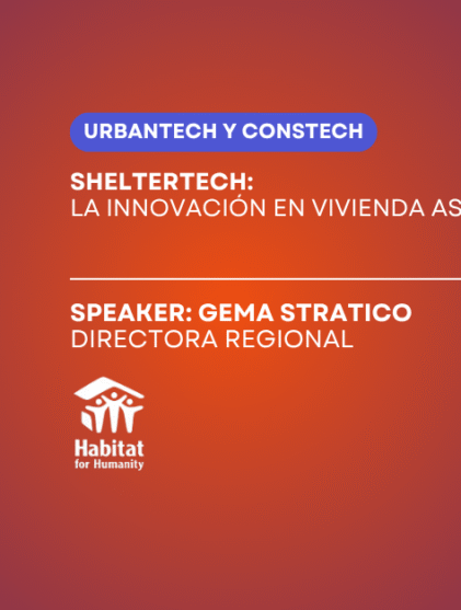 En la conferencia “ShelterTech, la innovación en vivienda asequible”, impartida por Gema Stratico de la organización Hábitat para la Humanidad (Perú), se discutió sobre la creación de modelos de negocio inclusivos para mejorar la calidad de las viviendas autoconstruidas en Latinoamérica.