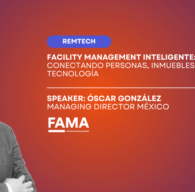 En la conferencia "Facility Management Inteligente: conectando personas, inmuebles y tecnología", impartida por Óscar González de la empresa FAMA México, se habló sobre cómo aplicar tecnología a la gestión integral de inmuebles, incluyendo mantenimiento, documentación, cumplimiento normativo, sostenibilidad y automatización.